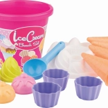 Seau, tamis en forme de coupe glacée, cuillère à boules, 4 couvercles de glace, 4 cornets, 3 coupelles