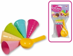 Androni moules à sable Glace sont idéaux pour les petits amateurs de sable et de glace. Cet ensemble de six pièces offre cinq cornets et une cuillère à glace pratique, permettant aux enfants de créer leurs propres délices glacés sablés.