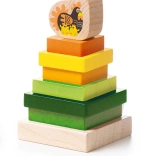 Pyramide colorée en bois avec petite poule CUBIKA – 8 pièces