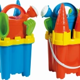 - Seau en forme de château, arrosoir 0,5 l, tamis, pelle, râteau, 2 cônes
