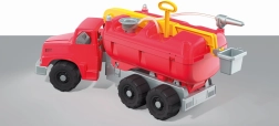 Énorme camion de pompier en plastique avec plate-forme extensible, pompe manuelle et lance à incendie avec portée jusqu'à 8 m de la série Giant Truck est idéal pour les enfants à partir de 36 mois.
