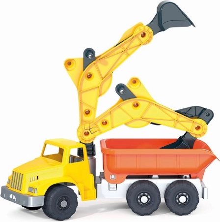 Grande voiture en plastique chargeur avec godet rétro est un jouet idéal pour les petits constructeurs. Conçu pour le plaisir et la sécurité, fabriqué à partir de plastique de haute qualité et résistant, capable de supporter une charge allant jusqu'à 100 kg.