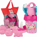 - Seau (Ø 17 cm), tamis, arrosoir 0,5 l, pelle, râteau, bateau pirate, 4 moules