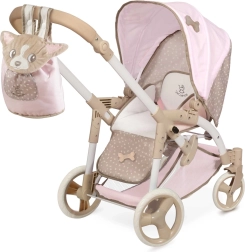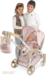 Cette charmante poussette pour poupées dans des tons rose et beige allie à merveille design et fonctionnalité. Grâce à la nacelle réglable qui se transforme facilement en siège sport, les enfants profitent d’un jeu plus réaliste. Elle inclut également un couffin de transport pour poupée avec une douce broderie veloutée DIDI et un pare-vent pratique.
