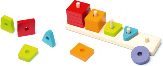 - Contenu du set : 15 formes + base en bois avec chevilles (16 pièces au total)