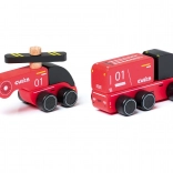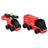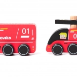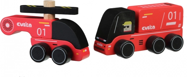 CUBIKA pompiers – petite voiture en bois avec hélicoptère
