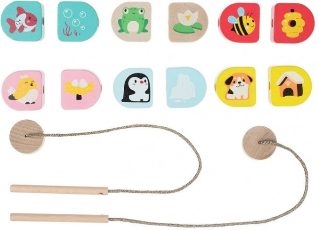 Le set en bois pour enfants Cubika « Où nous habitons » allie apprentissage et amusement. Les enfants recherchent les bonnes paires — l’animal et son habitat — et les enfilent sur un cordon, ce qui entraîne naturellement la motricité fine et le raisonnement logique. Les pièces sont colorées, solides et agréables en main.