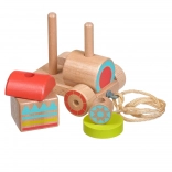 Une fois assemblée, la locomotive peut partir à l’aventure. La ficelle de 45 cm est idéale pour les petits explorateurs.