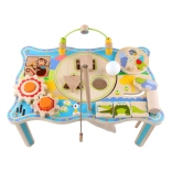 - Plusieurs activités en une : engrenages, perles, banc à marteler, boîte de formes, pêche magnétique