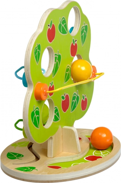 Ce toboggan à billes au design attrayant en forme d’arbre propose plusieurs rails en cascade sur les côtés. Il suffit de poser l’une des grandes boules en bois lisses au sommet et de regarder la descente, rythmée par des « clics », jusqu’à l’arrêt au pied de l’arbre. Un jouet idéal pour les enfants actifs qui aiment le mouvement, les sons et l’exploration des causes et des effets.