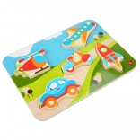 Découvrez un puzzle en bois ludique sur le thème des véhicules, qui développe la motricité fine, la coordination œil–main et la reconnaissance des formes. Les grandes pièces colorées se tiennent bien en main et s’insèrent facilement dans les découpes correspondantes. Un choix idéal pour un premier puzzle pour les petits passionnés de voitures, d’avions et d’autres moyens de transport.