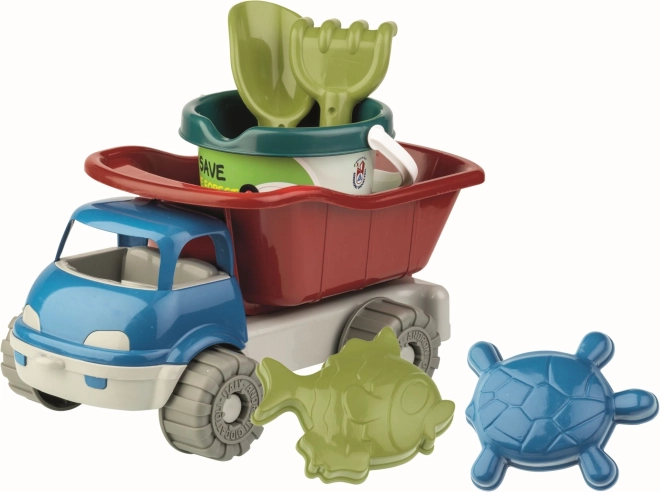 Androni ensemble pour le sable fabriqué à partir de plastiques recyclés offre du plaisir aux jeunes enfants. Comprend une petite voiture, un seau, une pelle, un râteau et deux moules sur le thème de la mer, idéal pour le sable ou la plage.