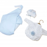 Offrez à votre poupée NEW BORN du style et du confort. Cet ensemble soigneusement assorti comprend une tenue toute douce dans des tons bleu et blanc avec motif d’étoiles, ainsi qu’un hamac suspendu pratique qui crée un petit cocon douillet pour la poupée. Idéal pour jouer à s’occuper de bébé et l’installer pour la sieste.
