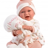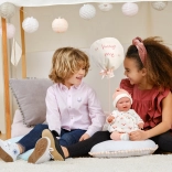Élégant ensemble de vêtements 4 pièces pour poupées NEW BORN de 40–42 cm, dans de douces couleurs pastel, avec des matières chaudes et un adorable doudou en forme de ballon portant l’inscription « hug me ». Parfait pour un habillage confortable, le jeu d’imitation réaliste et comme cadeau pour les petits amoureux des poupées. Fabriqué en Espagne, recommandé à partir de 3 ans.