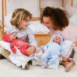 Élégant ensemble de 3 pièces pour la poupée NEW BORN au format 43–44 cm, qui ravira les petits soignants comme les collectionneurs. Inclus un petit oreiller tout doux servant de support et un adorable doudou mouchoir avec pompon. Fabrication de qualité faite en Espagne, garantissant un habillage facile et une longue durée de vie. Convient aux enfants à partir de 3 ans.