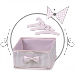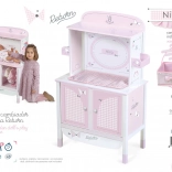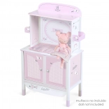Découvrez la collection Niza dans un rose tendre avec cette armoire pour poupées, belle et pratique, qui combine à la fois espace de rangement et centre de change. La partie inférieure comprend une tringle et un tiroir pour les tenues, tandis que la partie supérieure sert de table à langer avec imprimé assorti à la collection.