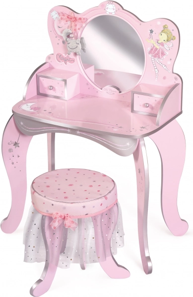 Cette coiffeuse en bois inspirée par les contes de fées est un complément idéal à toute chambre de fille. Elle est décorée de beaux impréssions et comprend