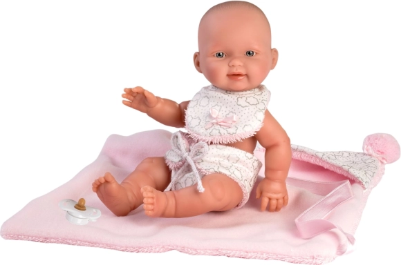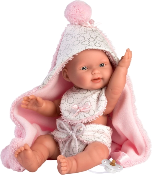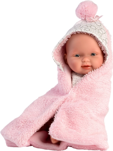 Cette tenue en deux pièces est spécialement conçue pour la poupée bébé New Born de 26 cm. Elle comprend une couverture réversible avec capuche qui protège la poupée et lui donne l’apparence d’un vrai bébé.
