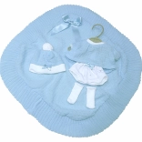 Élégant ensemble de 4 pièces pour poupée bébé New Born de 35-36 cm comprenant une couverture décorative avec un nœud. Parfait pour jouer et styliser votre poupée.