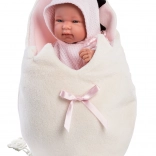Vêtement pour poupée avec style dinosaure, idéal pour les enfants à partir de 3 ans. Conçu pour les poupées Nouveau-Né de taille 43-44 cm, offre un environnement chaud et confortable grâce à la chancelière en polaire.