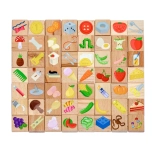 Ce matériel Montessori bien pensé apprend aux enfants à distinguer ce qui se mange de ce qui ne se mange pas. Les planchettes en bois représentent une assiette avec cuillère et un panier en osier où les enfants placent des plaquettes illustrant des fruits, légumes, sucreries ou boissons, mais aussi des clés, ampoules, aiguilles ou crayons. Le jeu favorise naturellement la découverte du monde, la concentration et les compétences de communication.