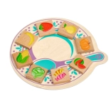 Les enfants posent les plaquettes sur l’assiette ou dans le panier et acquièrent naturellement des connaissances essentielles sur le monde. Idéal pour les préscolaires.