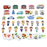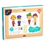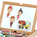 Découvrez un jeu magnétique ludique et éducatif dans une valisette en bois qui apprend aux enfants à reconnaître différentes professions. Le set comprend 17 cartes recto verso et 50 pièces de personnages et de moyens de transport à assembler librement. Le couvercle de la valisette sert de tableau double face – blanc pour le feutre et noir pour les craies – pour encore plus de créativité. Un outil idéal pour le développement de la motricité fine, de l’imagination et de la pensée logique des enfants dès 3 ans.