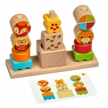 Le puzzle interactif « Jour et Nuit » allie amusement et apprentissage. Les enfants empilent des formes géométriques colorées et des blocs avec des animaux sur trois chevilles en suivant les modèles fournis. Les cartes de jour mettent l’accent sur les couleurs, celles de nuit sur les formes – idéal pour une progression étape par étape.