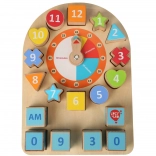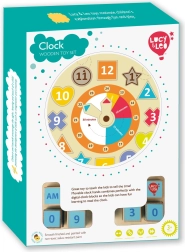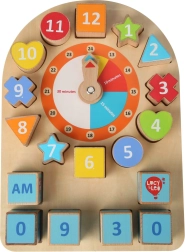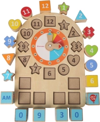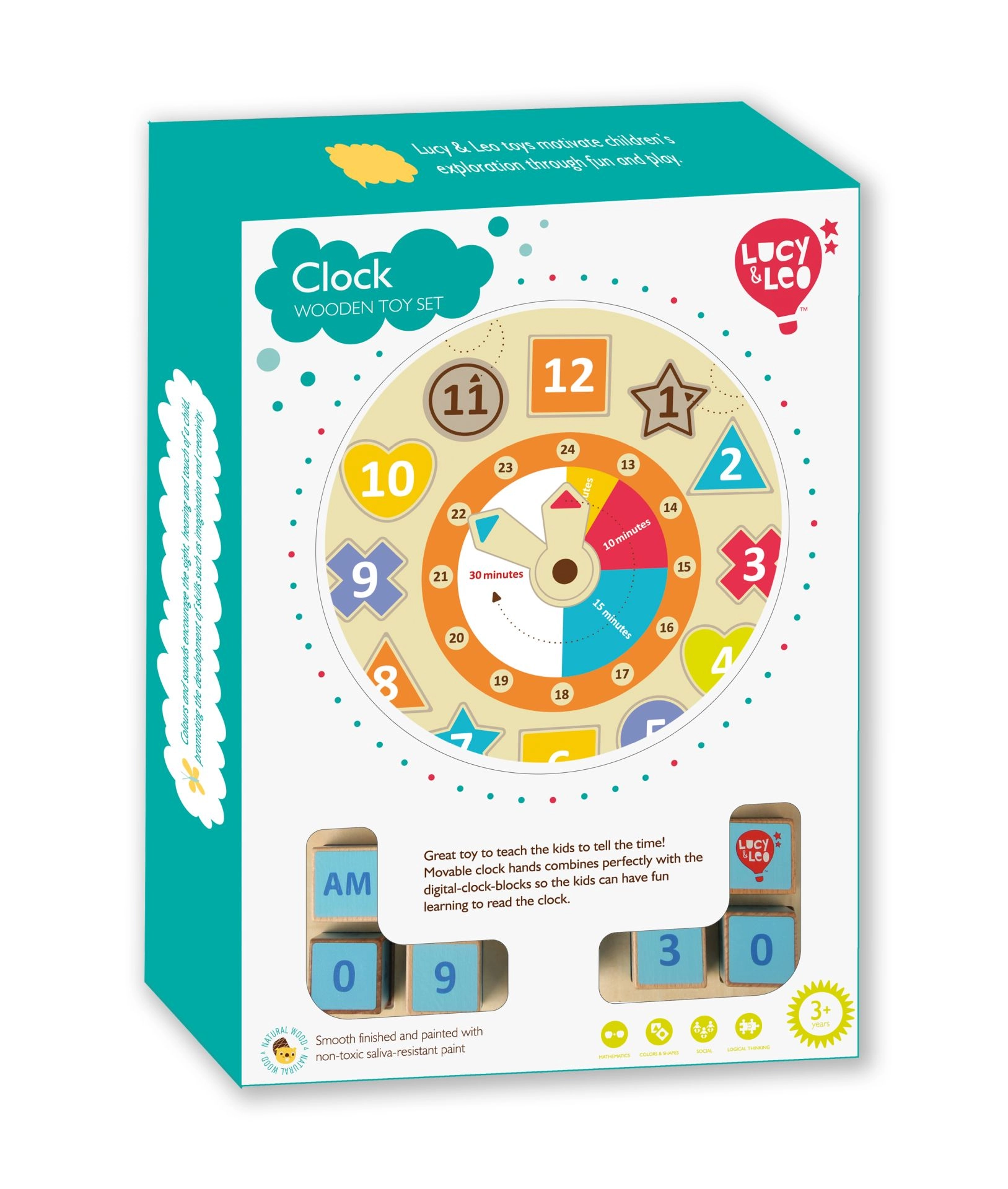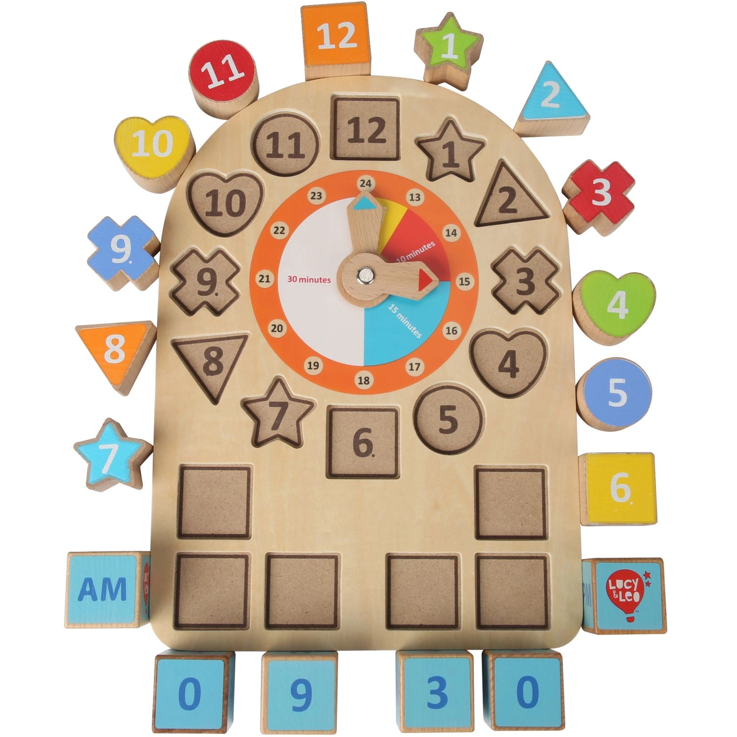Le plateau éducatif en bois LUCY & LEO combine un puzzle avec une horloge. Les enfants placent des formes colorées numérotées autour du cadran, tournent les aiguilles et apprennent ainsi l’heure analogique et digitale. Grâce aux cubes AM/PM, ils comprennent facilement la différence entre le matin et l’après-midi et peuvent s’exercer à l’expression de l’heure en anglais.