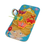 Le set de laçage en bois Princesse offre un apprentissage ludique et une foule d’activités créatives. Sur une grande planche illustrant la princesse, les enfants peuvent créer leurs propres coiffures et les décorer avec des couronnes, des nœuds ou des papillons, fixés à l’aide de lacets dans des trous pré-percés. L’activité favorise la patience, la concentration et le développement de la motricité fine.
