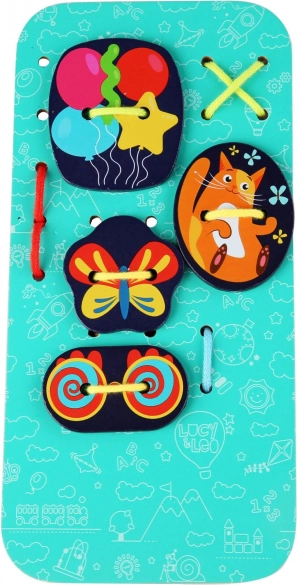 Découvrez le set de laçage en bois créatif Lucy & Leo, qui développe la motricité fine, la créativité et la reconnaissance des couleurs et des formes. L’ensemble comprend 31 pièces en bois, 4 lacets colorés et une grande plaque avec un magicien, sur laquelle les enfants enfilent et fixent des décorations selon leur imagination.