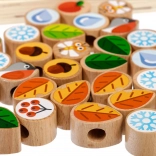 Ce set en bois de haute qualité propose aux enfants un jeu d’enfilage et de laçage ludique sur une plaque d’arbre solide avec support. Il comprend des pièces colorées (feuilles, fleurs, baies, glands, fruits, flocons, insectes, etc.) et plusieurs lacets pour d’infinies combinaisons. Après le jeu, les pièces peuvent être rangées dans le sac en lin pratique.