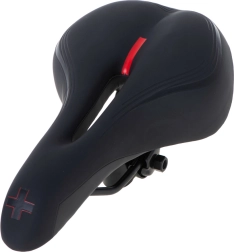 La selle a un design ergonomique avec un canal central pour le soulagement de la pression, augmentant ainsi le confort pendant la conduite.