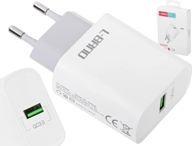 Le chargeur secteur L-BRNO, rapide et fiable, offre la charge rapide QC 3.0 avec une puissance allant jusqu’à 15 W, pour recharger vos appareils nettement plus vite. Grâce à ses dimensions compactes, il se glisse dans n’importe quel sac, l’entrée 110–240 V est idéale en voyage et le port USB universel assure la compatibilité avec la plupart des câbles et appareils.