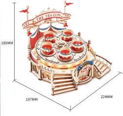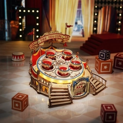 L’élégant manège « Tasses tourbillonnantes » transformera votre intérieur en mini parc d’attractions captivant. Maquette 3D en bois avec décoration de cirque détaillée, châssis incliné rotatif et escalier semi-circulaire, elle prend véritablement vie une fois assemblée : cinq tasses tournent régulièrement, le socle pivote en douceur et l’ensemble est sublimé par des LED spectaculaires et la douce mélodie Wind and Moon.