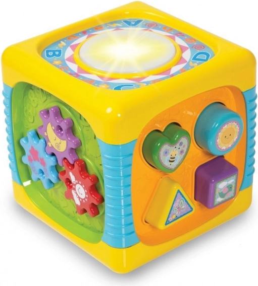 Cette cube interactive est conçue pour divertir les enfants tout en développant leurs compétences. Des couleurs vives, des lumières clignotantes et de douces mélodies stimulent la vue et l’ouïe, tandis que les boutons, engrenages et éléments coulissants développent le toucher et la motricité fine.