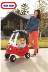 Le mignon porteur Little Tikes Cozy Coupe Coccinelle en version rouge offre aux enfants dès 18 mois une conduite sûre et joyeuse. Il dispose d’un volant avec klaxon, de roues avant pivotantes à 360° pour des manœuvres faciles et d’un centre de gravité bas pour plus de stabilité lors des premières balades. Le « visage » joyeux encourage le jeu créatif et l’interaction.