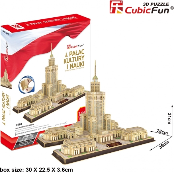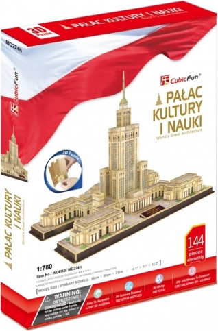 Profitez d’une construction minutieuse et découvrez l’architecture de Varsovie avec le modèle 3D réaliste du Palais de la Culture et de la Science. Les pièces en mousse d’environ 3 mm d’épaisseur, recouvertes de papier imprimé laminé, s’emboîtent parfaitement, vous n’avez donc pas besoin de colle ni de ciseaux. Le résultat est un modèle stable qui se distingue sur une étagère, un bureau ou dans une chambre d’enfant.