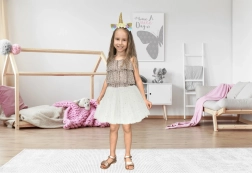 Légère jupe blanche aux étoiles brillantes qui ajoute une touche de magie à chaque pas. Parfaite pour danser, le carnaval et les séances photo.