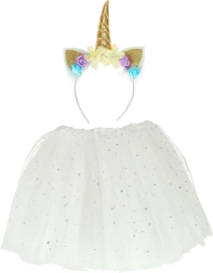 Ce ravissant costume de licorne apporte aux enfants joie et espace pour l’imagination. La jupe tutu légère à étoiles ondule joliment en mouvement, tandis que le serre‑tête à corne dorée et fleurs ajoute une touche féerique à l’ensemble.