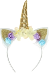 Serre‑tête confortable avec corne brillante, oreilles scintillantes et fleurs colorées pour compléter à merveille le costume de licorne.