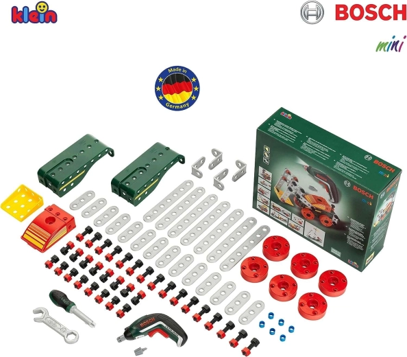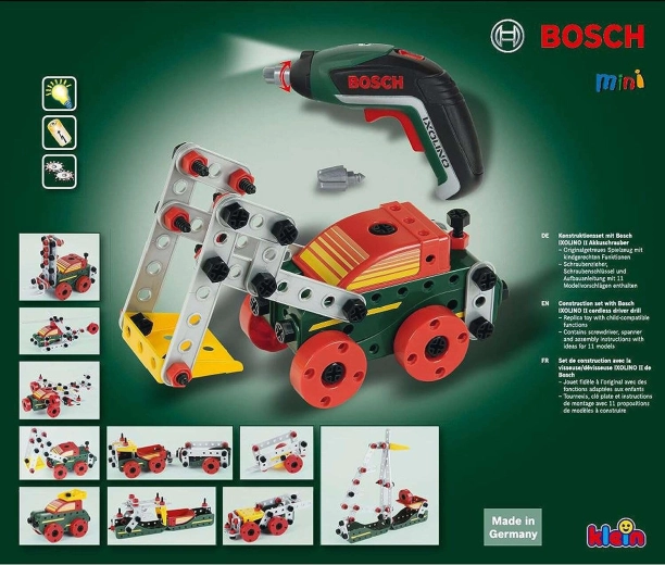 Ce kit richement équipé allie assemblage créatif et jeu réaliste avec de vrais outils. Les enfants peuvent, à l’aide de la visseuse pour enfants BOSCH Ixolino, visser, relier les pièces et construire leurs propres structures ou suivre les instructions fournies pour 11 modèles de véhicules.