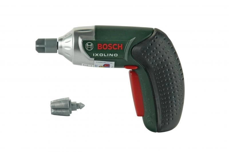 Visseuse pour enfants avec poignée ergonomique et caoutchoutée, embouts interchangeables et rotation gauche/droite pour un vissage authentique comme chez les adultes.