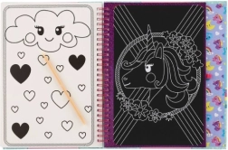 Le livre à gratter avec motif Licornes offre du plaisir tout en développant les compétences créatives. Grâce aux couvertures rigides et à la reliure en spirale, il est facilement manipulable et idéal pour les voyages :