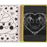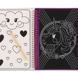 Livre à gratter Licorne éveille la créativité et l'enthousiasme. Idéal pour de longs moments à la maison ou en voyage, il suffit de gratter la couche noire pour révéler des images colorées.