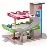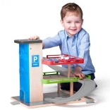 Ce garage offre plusieurs niveaux pour le stationnement et le jeu, permettant aux enfants de développer leur imagination et leur habileté.