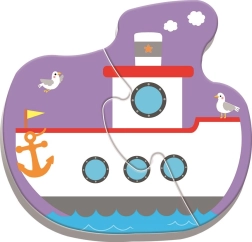 Puzzle pour enfants sur le thème des transports pour les tout-petits, alliant divertissement et apprentissage. Il comprend quatre puzzles de deux pièces avec un bateau, un avion, une voiture et un train, qui aident à développer la motricité et les compétences de résolution des enfants.