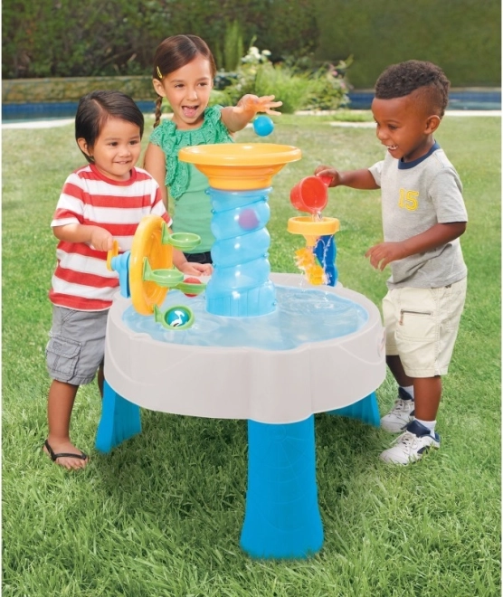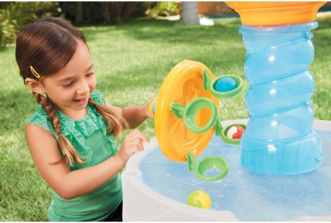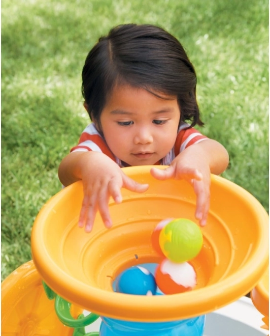 Une fantastique aventure avec de l'eau et des balles. Les balles sont lancées dans une énorme spirale.
