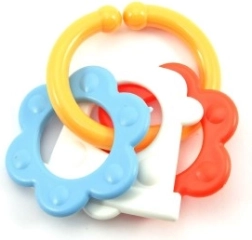 Notre anneau de dentition en plastique coloré est conçu pour les petites mains qui peuvent facilement saisir chacune de ses formes. Grâce à sa diversité, votre bébé stimulera à la fois ses sens et ses gencives.