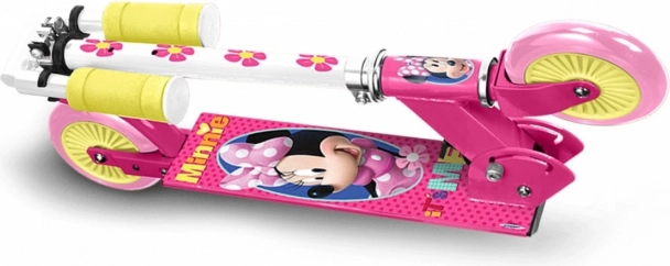 La trottinette se distingue par sa couleur rose vif avec des éléments jaunes et de belles illustrations de Minnie Mouse qui captiveront immédiatement chaque enfant.
